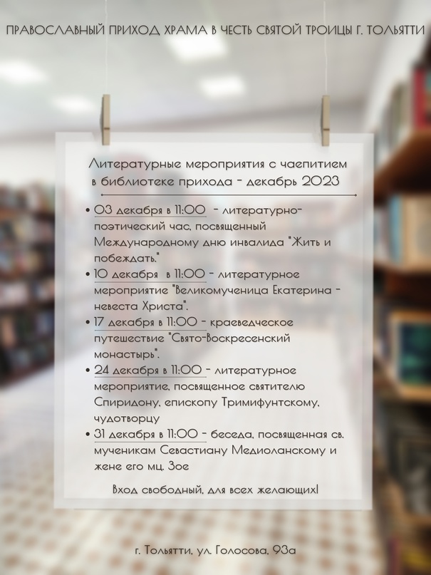 Анонс мероприятий на декабрь 2023г. 01.12.2023 18.01.2024 Литературное мероприятие, посвящённое Международному дню инвалидов Литературное мероприятие, посвящённое Международному дню инвалида.