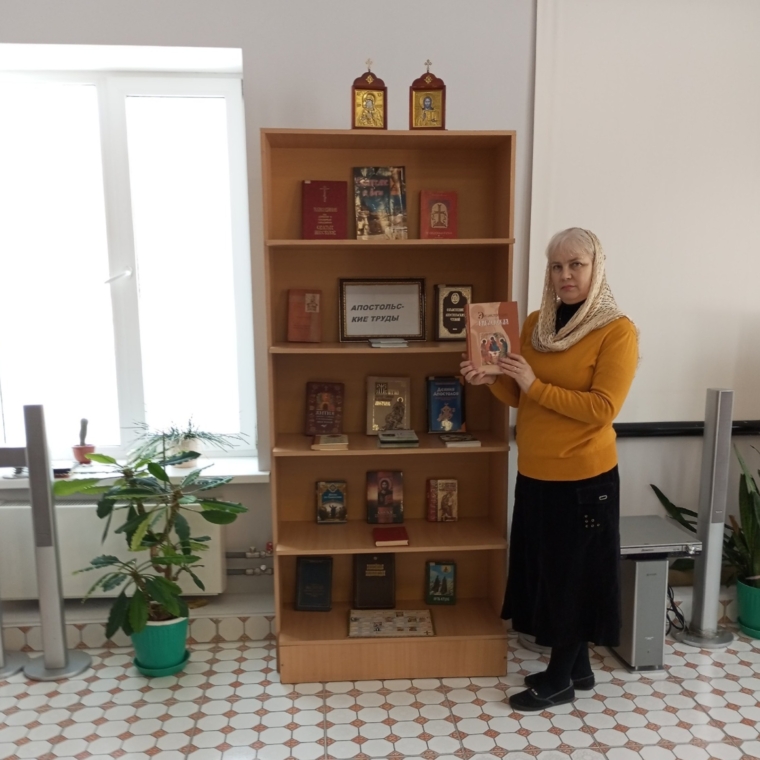 Библиотекарь Булгакова Лилия познакомила присутствующих с житием священномученика Игнатия Богоносца, представила книжную выставку «Апостольские труды» и помогла подобрать литературу для домашнего чтения.