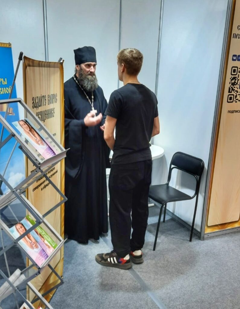 Особым украшением выставки стало живое общение. Наш клирик, иерей Иоанн Белинский проводил молебны перед святынями для участников и гостей и с большим вниманием отвечал на многочисленные вопросы о вере и православных традициях.