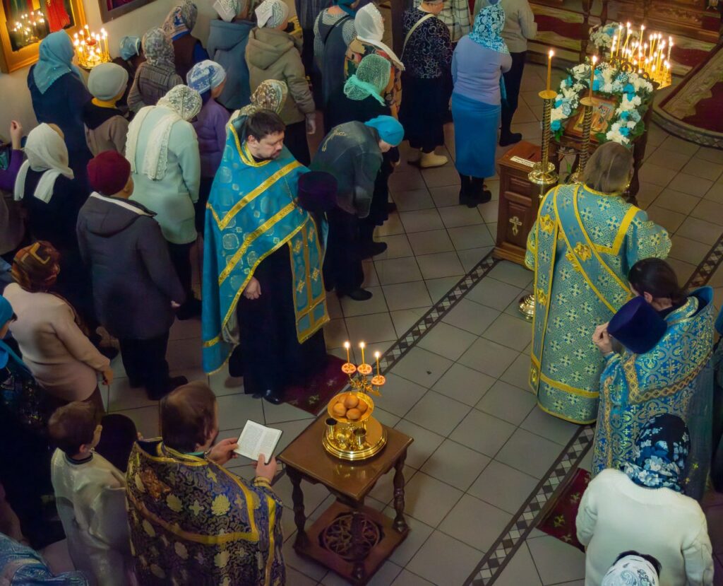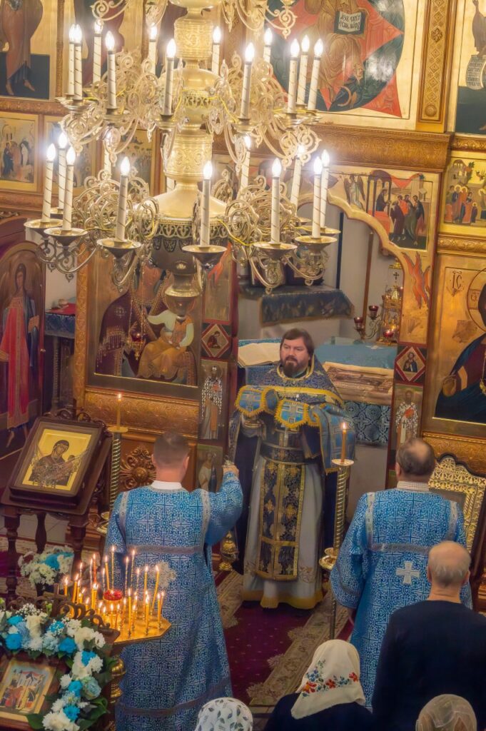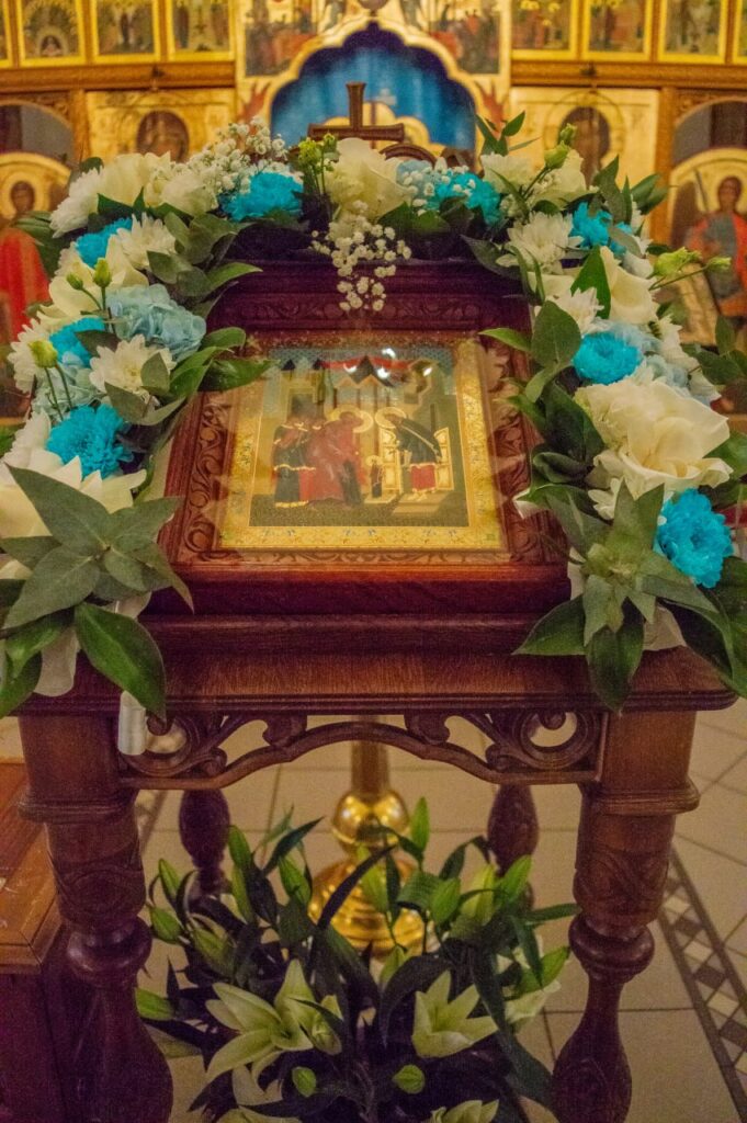 Накануне праздника всенощное бдение с литией и освящением хлебов, а также раннюю Божественную литургию совершил иерей Андрей Литвинко в сослужении духовенства прихода.