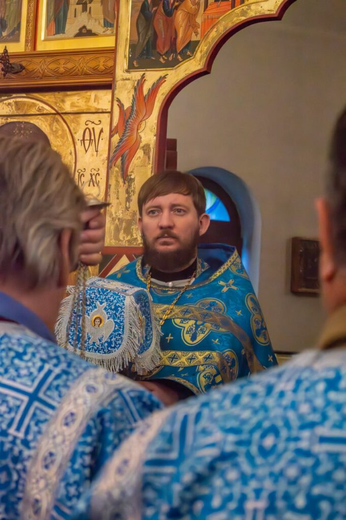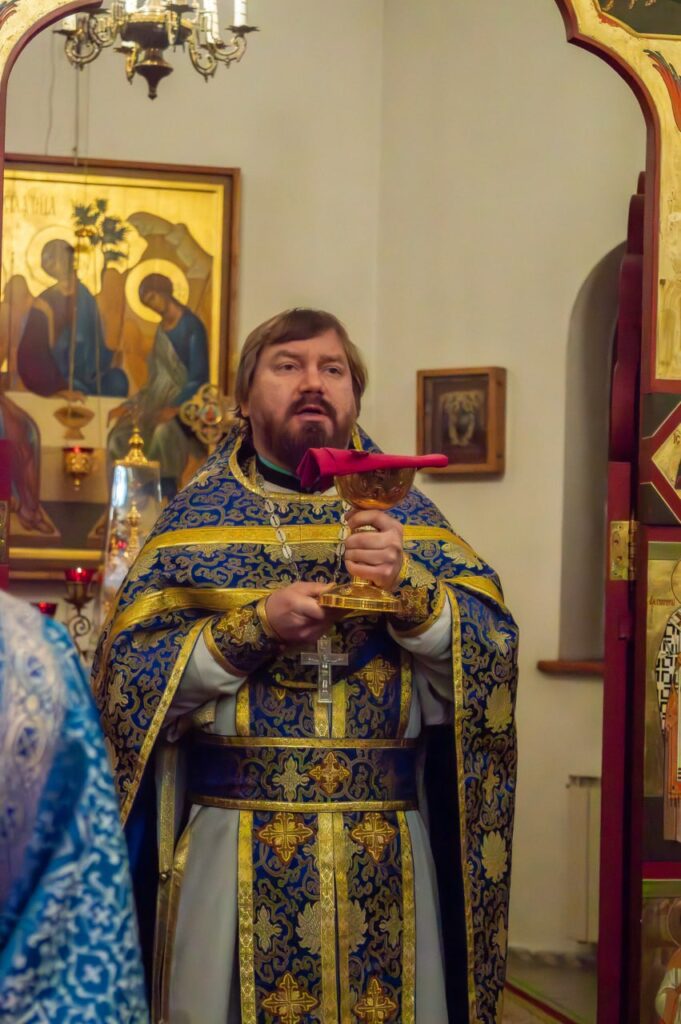 Праздничную позднюю Литургию в этот торжественный день возглавил настоятель нашего прихода, иерей Илья Ермолаев.