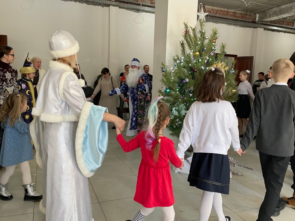 Праздник продолжился в фойе центра, где вокруг ёлочки с Дедом Морозом и Снегурочкой закружились веселые хороводы, прошли игры, познавательная викторина и вручение подарков. Все желающие могли насладиться душевным общением за чаепитием.