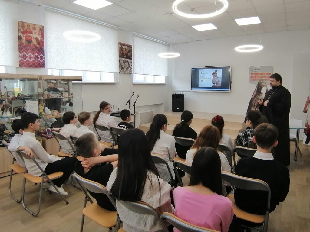 26 марта клирик нашего прихода, иерей Виктор Мишков, посетил Модельную библиотеку национальных культур (ул. Горького, 42), где провёл лекцию для школьников, посвящённую Дню православной книги.